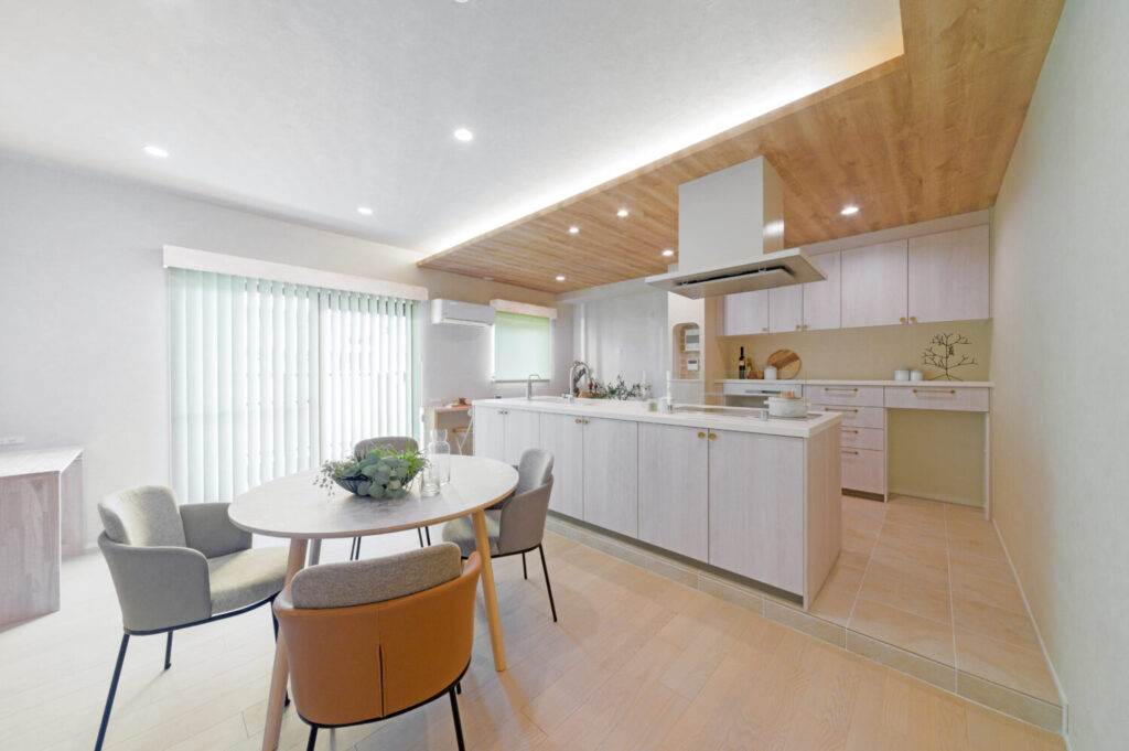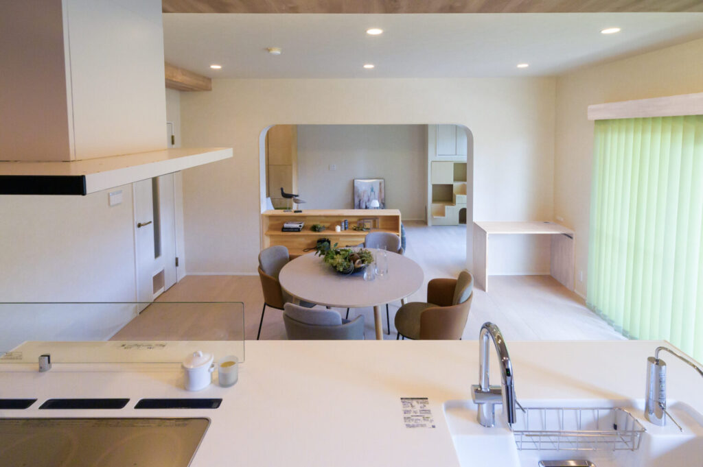 ダイニングとの行き来が短くなり、家族も手伝いやすい動線に。