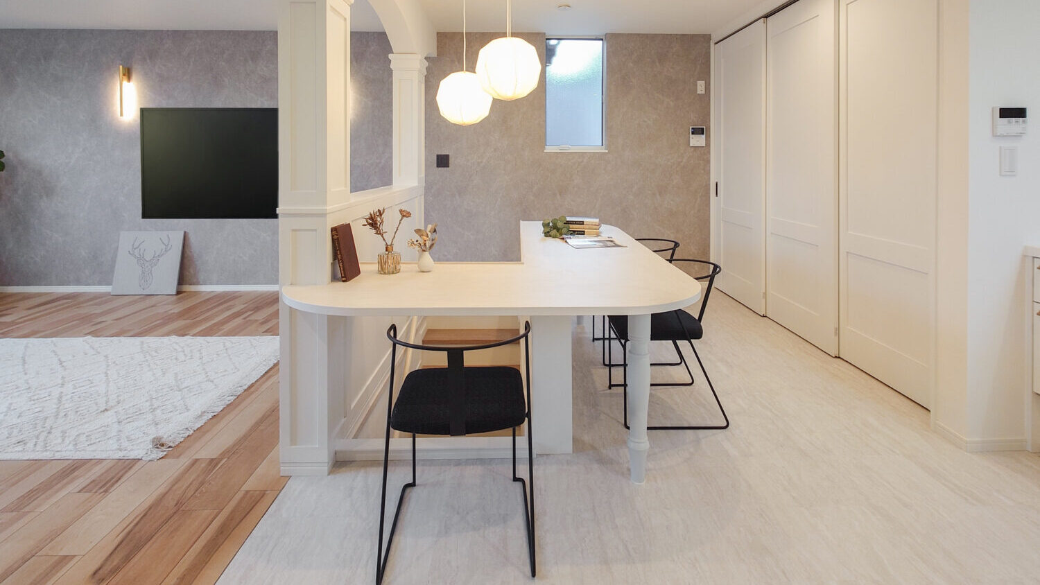 リノベーションでは、住まいのデザインに合わせた造作テーブルを取り入れるケースもあります。
