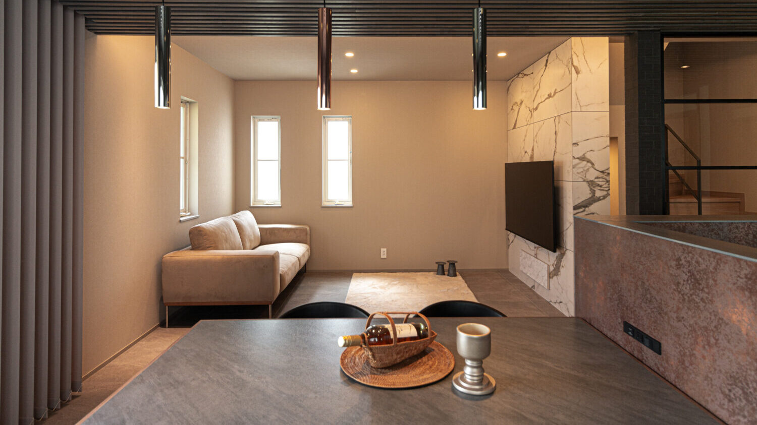 空間のサイズに合わせて造作ソファーを設計することで、既製のソファーでは難しいレイアウトも実現できます。