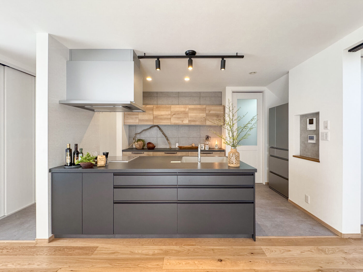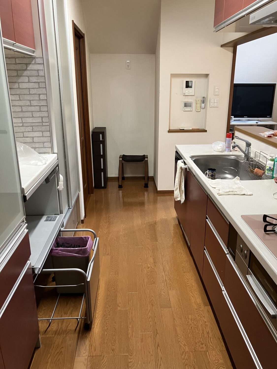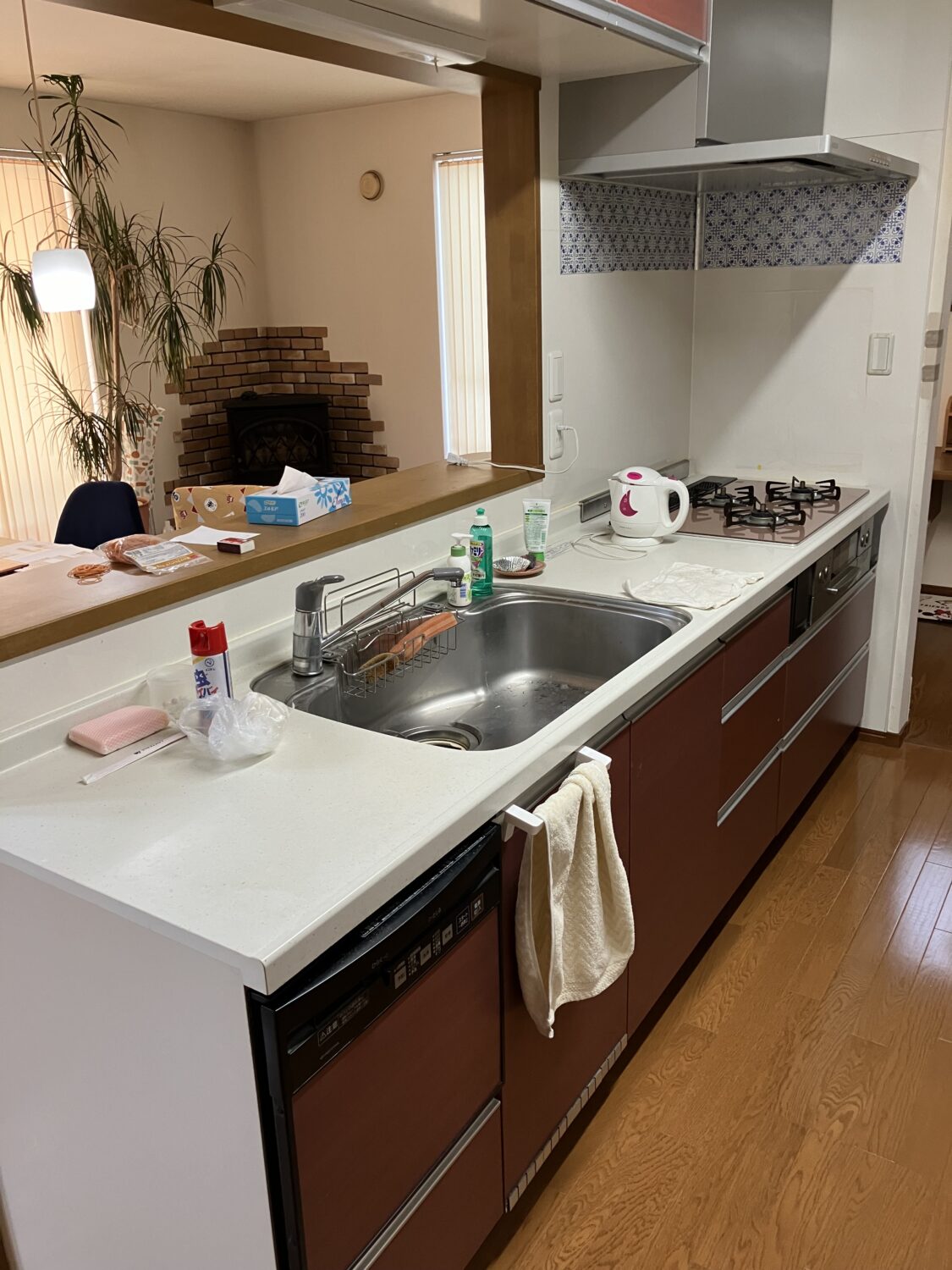 以前は垂れ壁と腰壁によって、キッチンがやや区切られたような空間でしたが、LDKと自然につながるオープンキッチンへと変更しました。