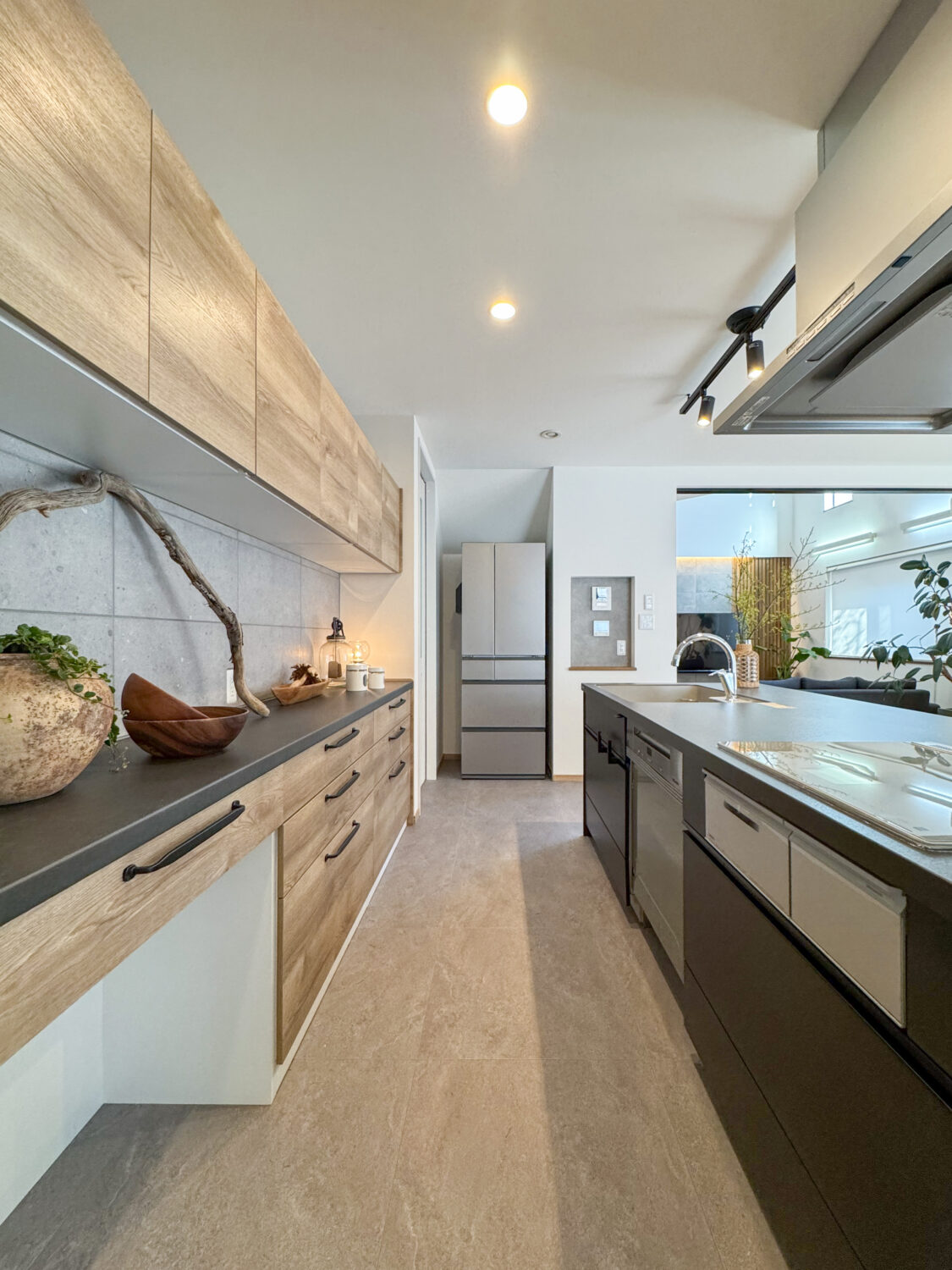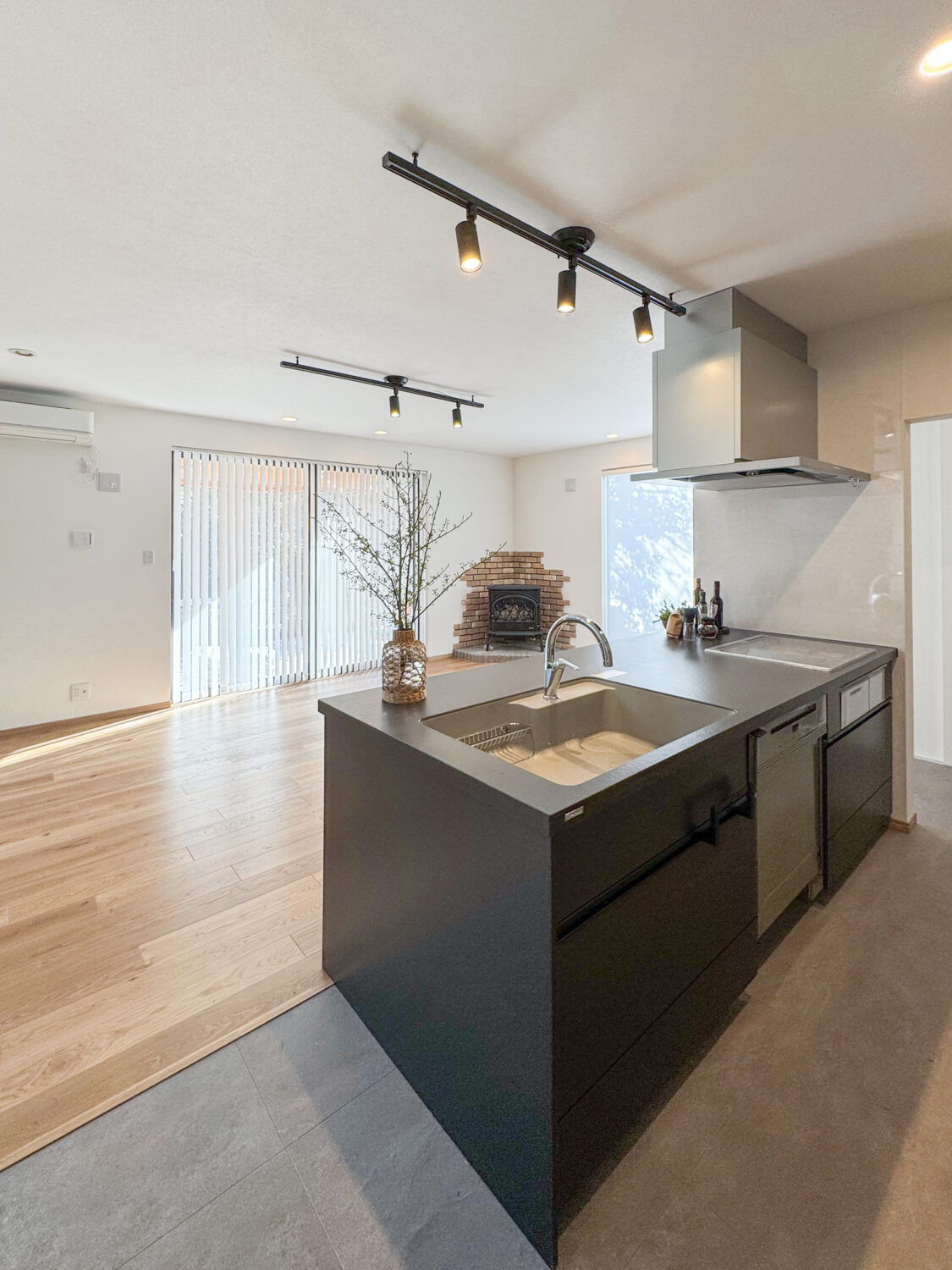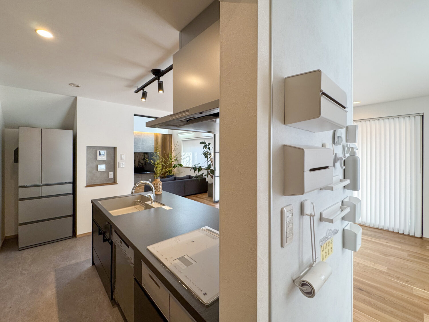 以前は垂れ壁と腰壁によって、キッチンがやや区切られたような空間でしたが、LDKと自然につながるオープンキッチンへと変更しました。