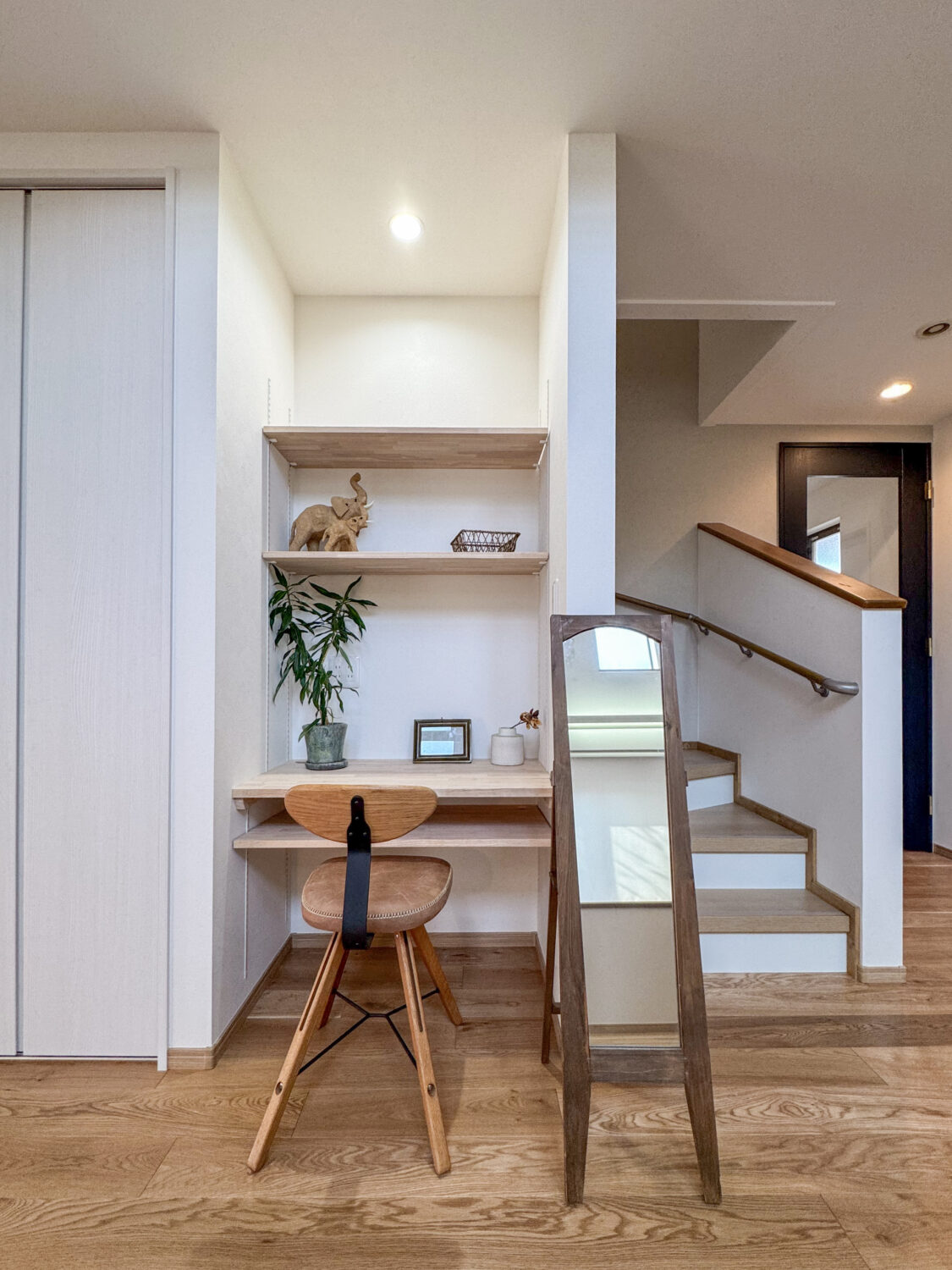 元々は広めのワークスペースでしたが、リフォーム後は収納とワークスペースを分け、使い勝手を高めました。